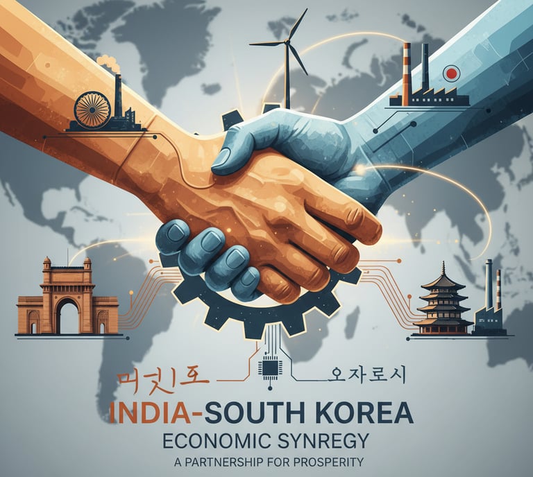 India and South Korea—two of Asia’s most dynamic economies—share parallel journeys of resilience, innovation, and progress. From Korea’s “Miracle on the Han River” to India’s “Digital Revolution,” both nations have transformed into global leaders in industry and technology. This report explores how their complementary strengths in manufacturing, technology, sustainability, and culture can drive future partnerships under the Donghaeng-Manthan vision—symbolizing “walking together” and “deep contemplation.” By analyzing their economic models, key industries, and human capital, it aims to chart a path toward a harmonious and sustainable India - South Korean collaboration.
