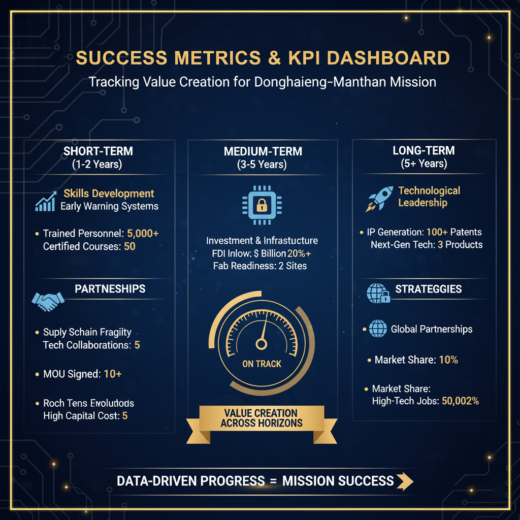 To ensure the Donghaeng-Manthan mission remains on track, progress must be measured against a clear set of Key Performance Indicators (KPIs) that track value creation across different time horizons.