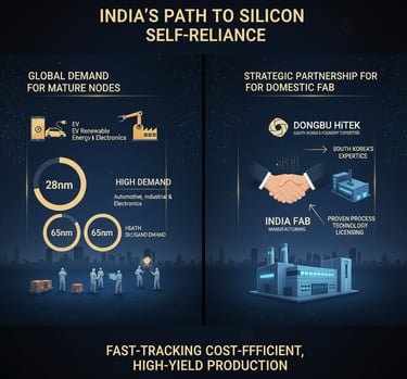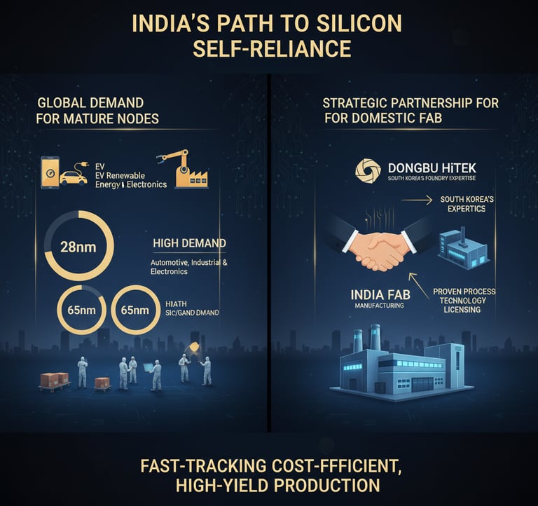 There is strong, sustained demand for chips built on mature nodes (e.g., 8nm, 65nm) for the automotive, industrial, and consumer electronics sectors. Establishing domestic foundry capacity at these nodes is essential for India's self-reliance. Licensing proven process technology from a South Korean partner like Dongbu HiTek can accelerate the ramp-up of a cost-effective mature-node fab in India