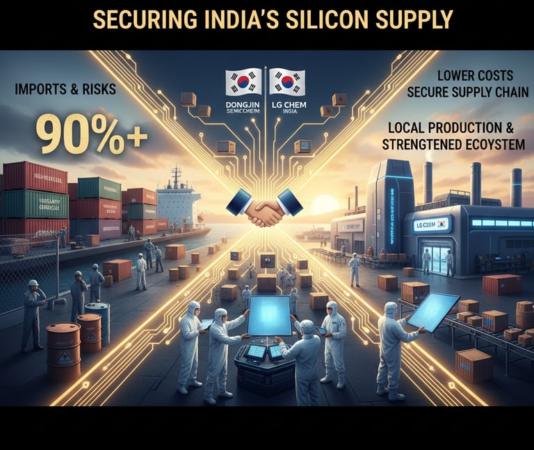 India currently imports over 90% of its high-purity chemicals, specialty gases, and other critical materials for semiconductor manufacturing. This dependence creates supply chain vulnerabilities and inflates costs. Fast-tracking joint ventures with Korean materials leaders like Dongjin Semichem or LG Chem to establish local production facilities is a foundational step to de-risk the entire Indian semiconductor ecosystem..