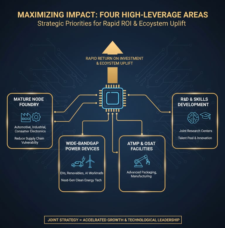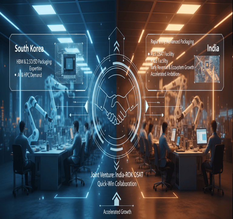 While full-scale fabs take years to build, India can capture high-value opportunities in the mid-stream of the supply chain through advanced packaging (OSAT). Demand is soaring globally, driven by AI and high-performance computing. South Korea is a leader in advanced packaging technologies like High-Bandwidth Memory (HBM) and 2.5D/3D integration. A near-term joint venture to establish a pilot OSAT line in India represents the fastest path to revenue and ecosystem development.
