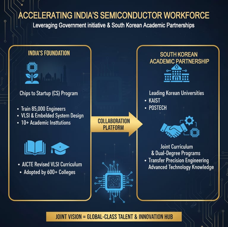 The Indian government has already laid the groundwork with key initiatives. The 'Chips to Startup' (C2S) Program aims to train 85,000 engineers in VLSI and Embedded System Design across 120 academic institutions. This provides a perfect platform for collaboration. By partnering with leading Korean universities like KAIST and POSTECH, joint curricula and dual-degree programs can be developed to transfer precision engineering knowledge directly. This effort is complemented by the AICTE's revised VLSI curriculum, already adopted by over 600 colleges.