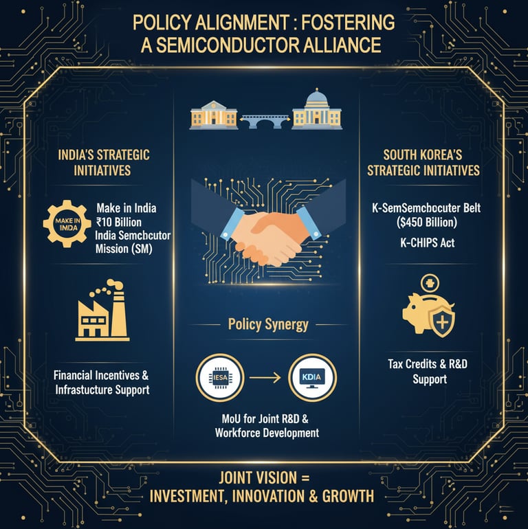 The strategic vision is underpinned by powerful, state-backed policy alignment. India's ambitious $10 billion India Semiconductor Mission (ISM) and 'Make in India' initiative are perfectly complemented by South Korea's massive $450 billion 'K-Semiconductor Belt' strategy and the 'K-CHIPS Act'. These initiatives create a fertile ground for collaboration, with both governments providing substantial financial incentives, tax credits, and infrastructure support to foster investment in R&D, fabrication, and packaging. This policy synergy is reinforced by institutional momentum, such as the MoU between the India Electronics and Semiconductor Association (IESA) and the Korea Display Industry Association (KDIA) for joint R&D and workforce development.